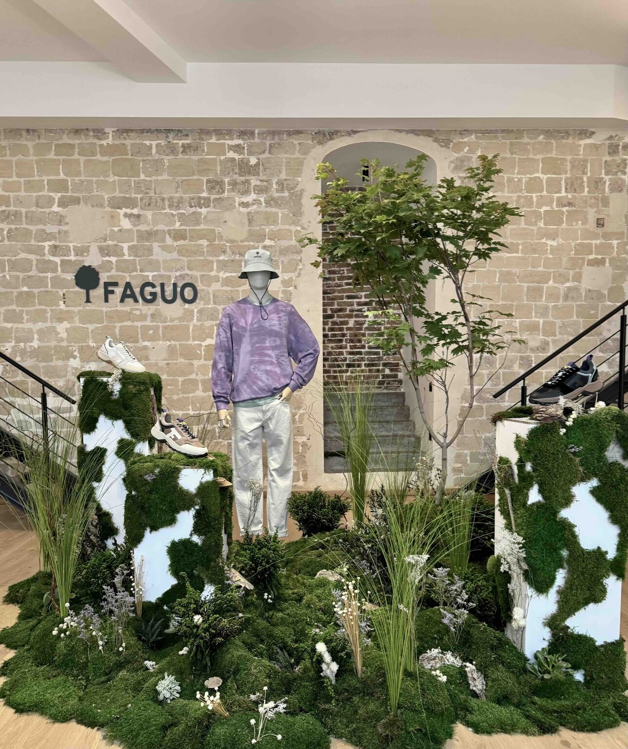 Pour le showroom FAGUO SS26, un grand espace parisien se transforme en écrin immersif pour la nouvelle collection. L’ADN de la marque s’exprime à travers une ambiance forestière, des installations végétales et des matières naturelles, offrant une expérience où chaque détail fait ressentir l’univers FAGUO.